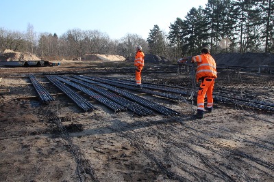 Baustelle Bremen-Oberneuland, hier werden die Bahnübergänge Auf der Heide und Franz-Schütte-Allee durch Unterführungen ersetzt. Wir stellen hier 3500m Injektionsanker und 6000m Auftriebspfähle her ...